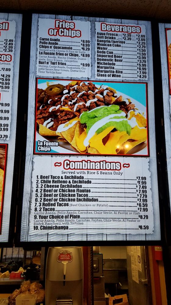 La Fuente Mexican Grill in San Diego offers a casual dining experience with a variety of Mexican dishes. They provide options for reservations, delivery, takeout, and catering. The menu includes limited vegetarian options and accepts various payment methods including cryptocurrency. Customers praise the $2 Taco Tuesday deal and mention favorites like the Birria and Pollo Asado. The atmosphere is described as spacious and not overly loud, with self-service salsa stations and a drink fridge. Handmade tortillas and flavorful meats like Cabeza, Carnitas, and Fish Tacos receive high praise. La Fuente Mexican Grill is recommended for a family or friends' gathering. With free Wi-Fi, TV, and plastic-free packaging, it's a great spot for a delicious and convenient Mexican meal.